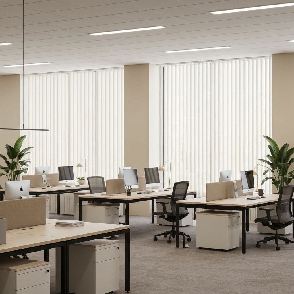 딱딱한 사무실을 세련된 카페 같은 공간으로 바꾸는 버티컬 블라인드의 힘